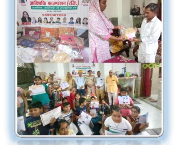 Charitable work cooperation and painting competition by Aadishakti Foundation Jodhpur (Rajasthan). Aadishakti Foundation distributed gifts and cash in the marriage of Radhika, daughter of Lunaram Mangilal Lata, a resident of village Jhanwar Jatawas, Jodhpur.