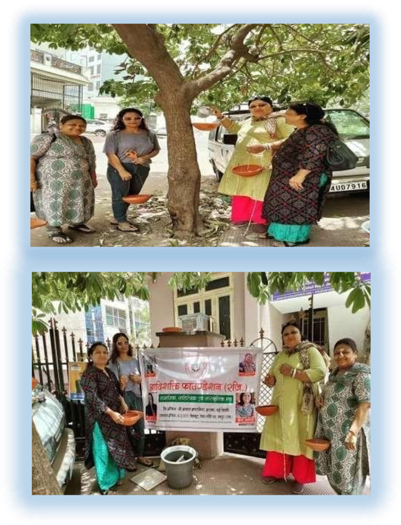 Aadishakti Foundation Rajsathsn state executive set up bird feeders for birds. During the scorching heat, speechless birds die due to lack of water. Executive members planted 51 bird feeders at such places where they can arrange food and water with full responsibility.